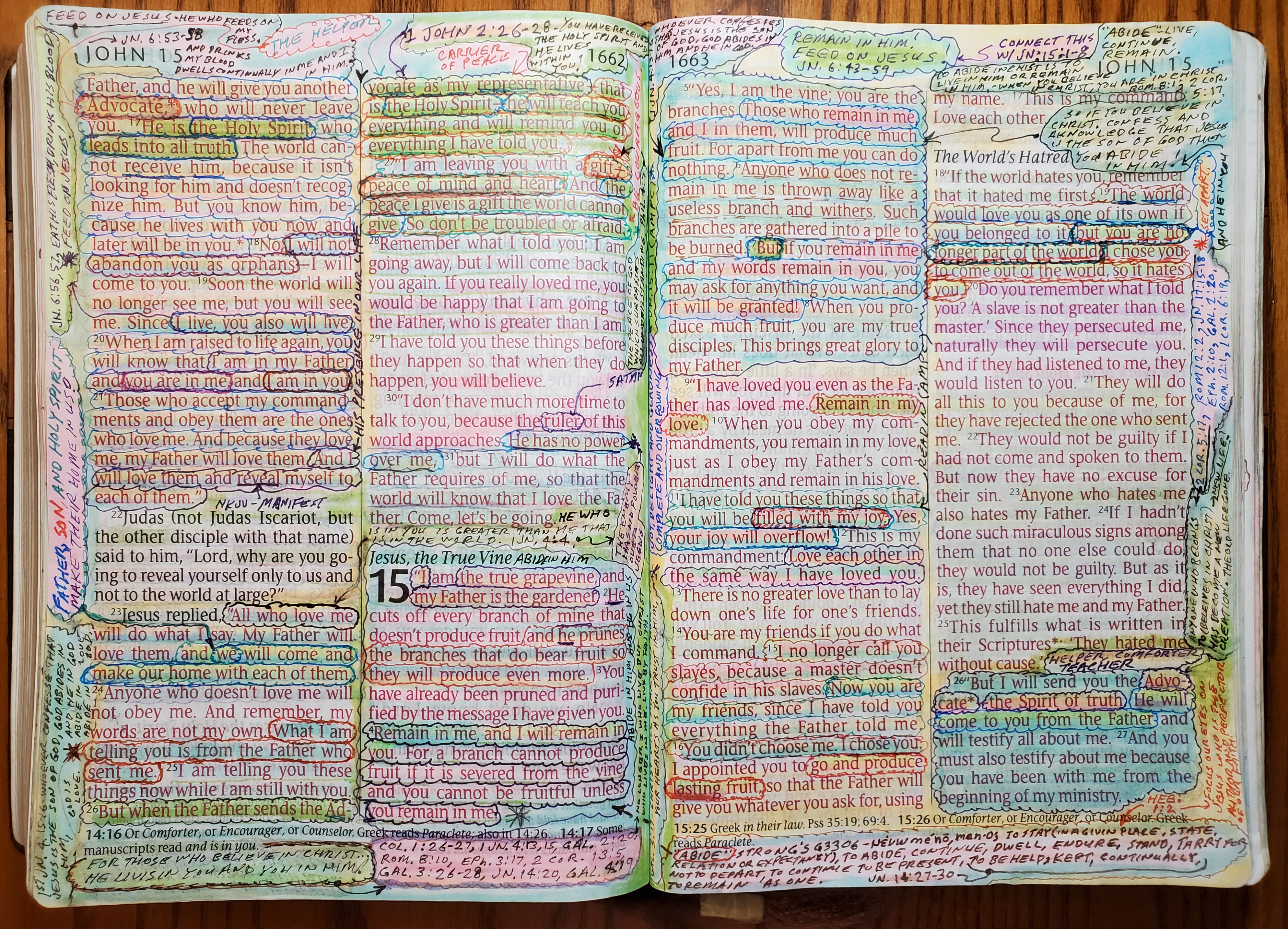 See Blue Letter Bible’s Strongs reference for John 15:7 “abide” Strong’s G3306